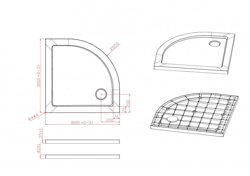 Поддон Cezares 80x80 TRAY-M-R-80-550-35-W из стеклокомпозита (SMC)