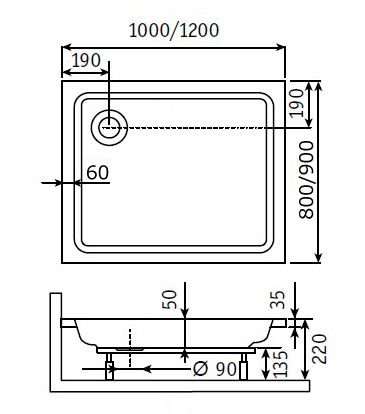 Акриловый поддон для душа RGW STYLE PR 900х1000х220 Подробнее