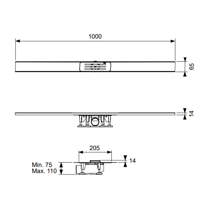 Профиль 65 х 1000 мм • Сифон 50 DN, выход в бок, производительность > 0,6 л/с •... Подробнее