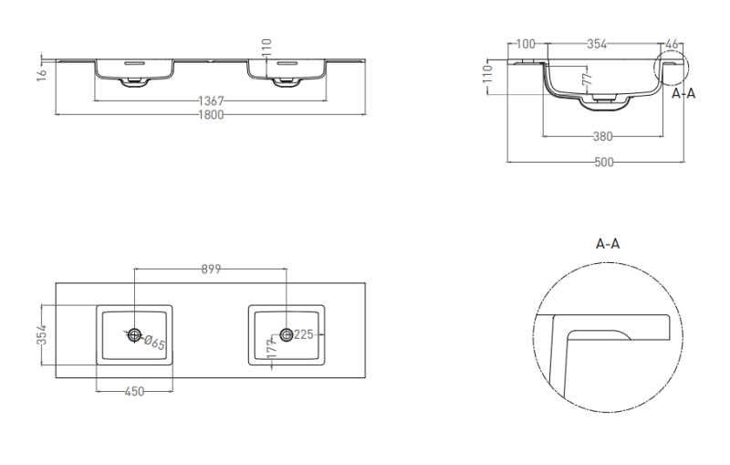 • Раковина БЕЗ отверстия под смеситель