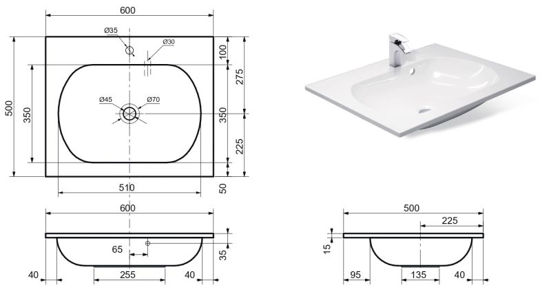 Сглаженные формы широкой прямоугольной чаши не оставят равнодушным даже самого взыскательного покупателя, ведь на ряду с функциональностью раковина обладает безупречно лаконичными формами.