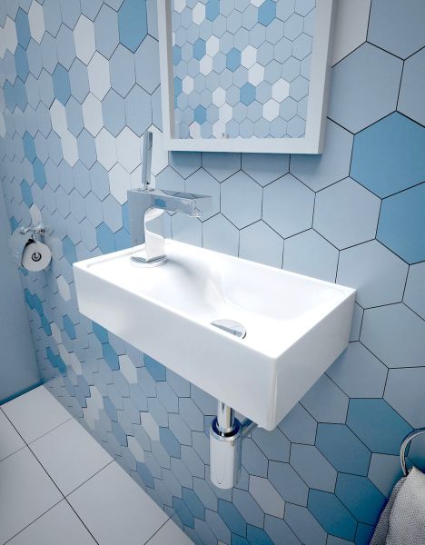Компактная раковина позволит сэкономить максимум пространства как туалетной, так и ванной комнат, проста и удобна в использовании.