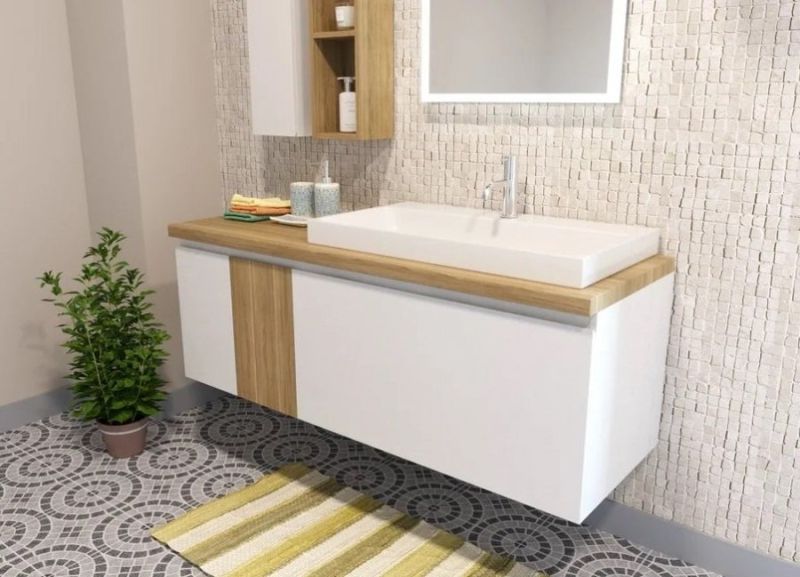 Коллекция Malibu выполнена в эко-стиле из экологичных материалов, что дает возможность быть ближе к природе. Подвесная тумба выглядит естественно и натурально. Её украшает большая столешница из массива дерева, устойчивая к влаге. Поверхность столешницы гладкая и прочная. Накладная раковина выполнена из литьевого мрамора. В тумбе расположены 2 вместительных ящика, один из них выполнен из массива дерева, который полностью повторяет текстуру столешницы. Malibu придаст невероятно уютную и гармоничную атмосферу ванной комнате. Мебель выполнена из влагостойкого ЛДСП и качественного MDF с использованием эмали RENNER (Италия). Ящики снабжены системой плавного закрывания. Для мебели используется фурнитура Samet (Турция).