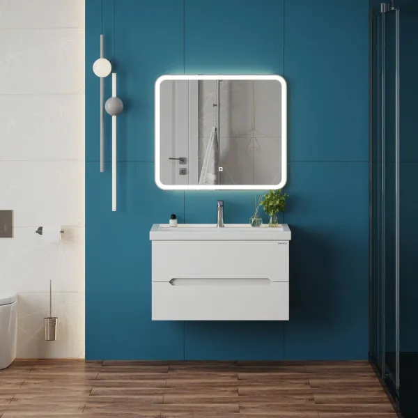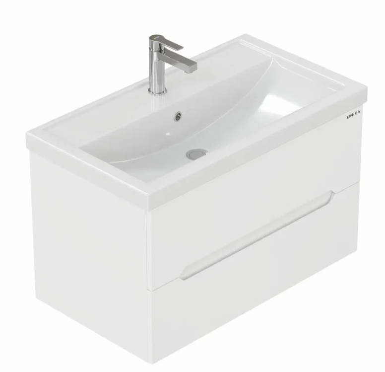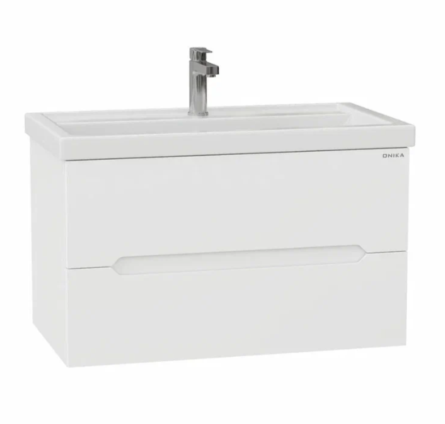 Подвесная тумба под раковину Onika Айленд 80 сочетает в себе стильный минималистичный дизайн, белую глянцевую поверхность и высочайшее качество исполнения.