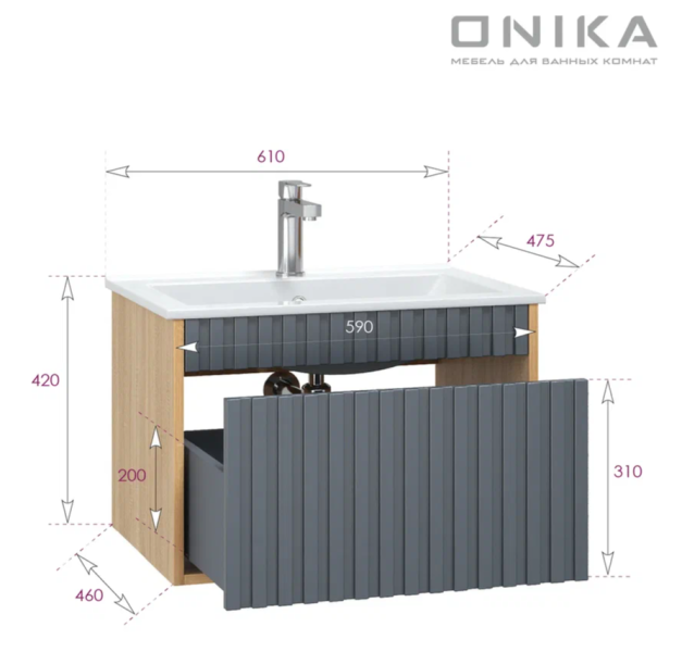 Элегантная подвесная тумба Onika Дайлер 60 представляет собой идеальное дополнение современного интерьера ванной комнаты.