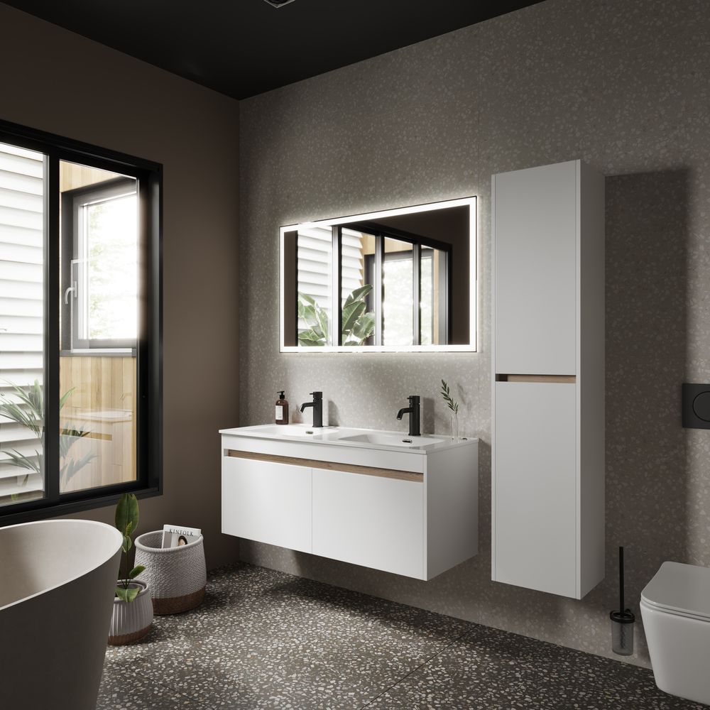 Подвесная тумба под двойную раковину Sancos Smart SM120-2W 120см белый глянец купить