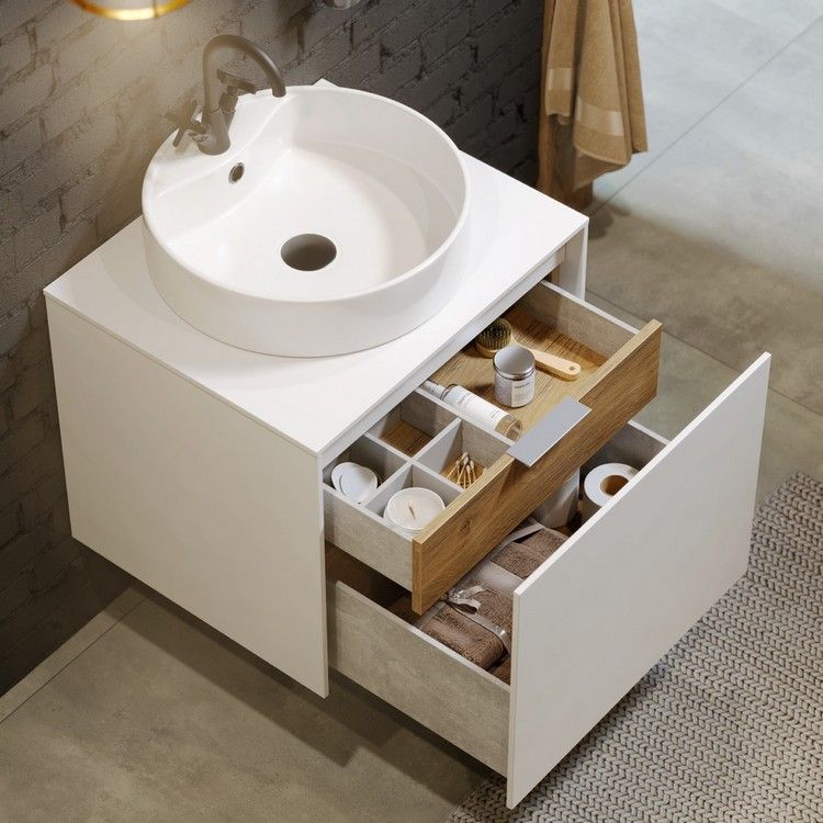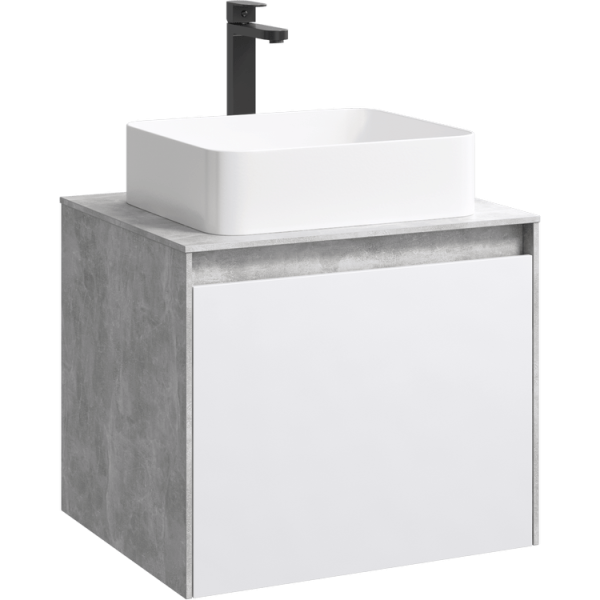 Подвесная тумба под раковину Aqwella Mobi MOB0106BS+MOB0706W 60 смПодвесная тумба 60 см с двумя ящиками: основной и внутренний, скрытый за фасадом. Цвет бетон светлый/белый; с умывальником