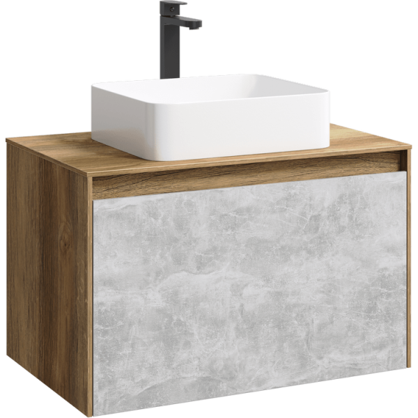 Подвесная тумба под раковину Aqwella Mobi MOB0108DB+MOB0708BS 80 смПодвесная тумба 80 см с двумя ящиками: основной и внутренний, скрытый за фасадом. Цвет дуб балтийский/бетон светлый; с умывальником