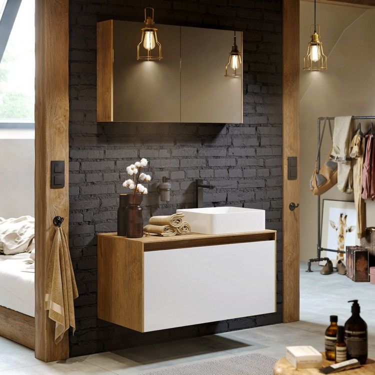 Подвесная тумба под раковину Aqwella Mobi MOB0110W+MOB0710BS 100 смПодвесная тумба 100 см с двумя ящиками: основной и внутренний, скрытый за фасадом. Цвет белый/бетон светлый; с умывальником