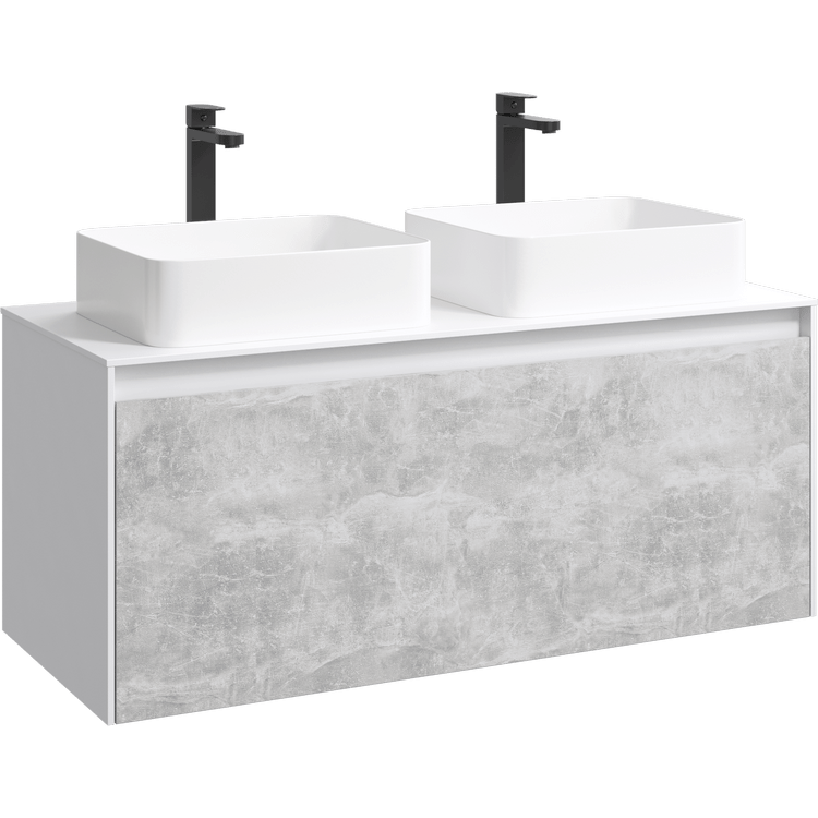 Подвесная тумба под раковину Aqwella Mobi MOB0112W+MOB0712BS 120 смКоллекция Mobi гармонично вписывается в интерьер любой современной ванной комнаты. Так как существует возможность комбинировать фасады и корпуса трех цветов: бетон светлый, дуб балтийский и белый глянец.