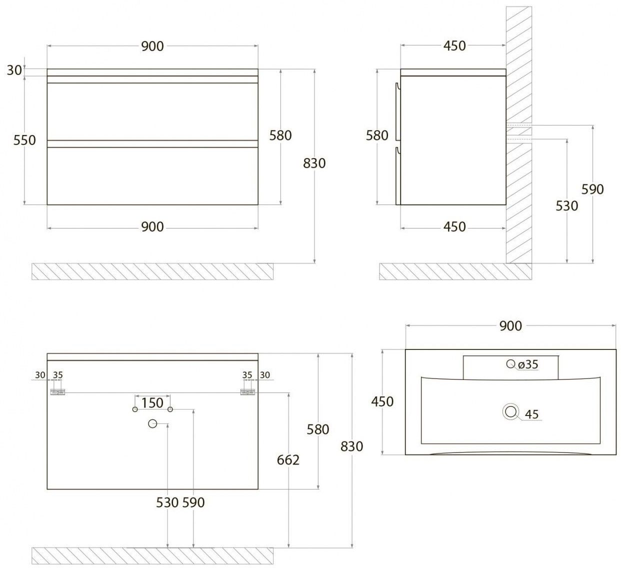 Тумба под раковину Art&Max выполнена в современном стиле и прекрасно впишется в интерьер любой ванной комнаты. Благодаря подвесной конструкции изделие не занимает много места, позволяет экономить пространство и облегчает уборку. Модель оснащена двумя выдвижными ящиками с направляющими скрытого монтажа с доводчиками. Фасад изделия выполнен из МДФ.Тумба может использоваться вместе с раковиной AM-LAV-900-MR-FP.Раковина и смеситель в комплект поставки не входят и приобретаются отдельно.Особенности:Матовое покрытие