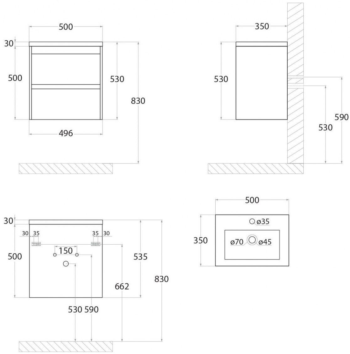 Тумба под раковину Art&Max выполнена в современном стиле и прекрасно впишется в интерьер любой ванной комнаты. Благодаря подвесной конструкции изделие не занимает много места, позволяет экономить пространство и облегчает уборку. Модель оснащена двумя выдвижными ящиками с доводчиками. Фасад изделия выполнен из ЛДСП.Тумба может использоваться вместе с раковиной AM-LAV-500-MR-A.Раковина и смеситель в комплект поставки не входят и приобретаются отдельно.Особенности:
