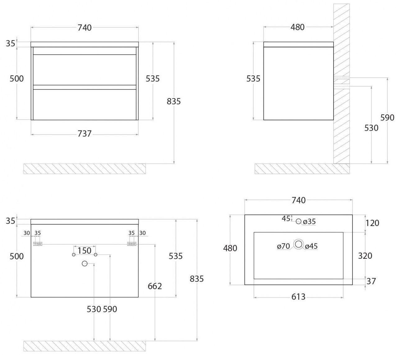 • Рекомендуемая высота от пола: 830 мм