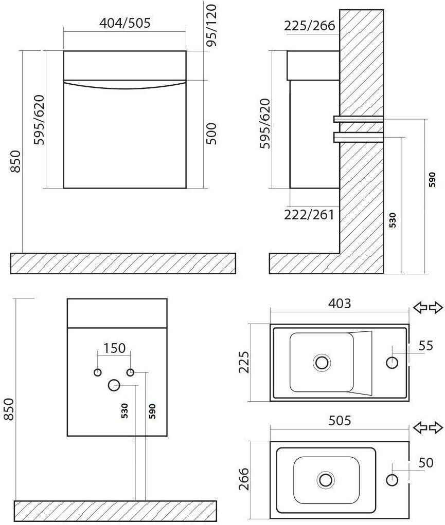 Подвесная тумба под раковину Art&Max Liberty 50см правая белый глянцевый Liberty-500-1D-SO-BL-R
