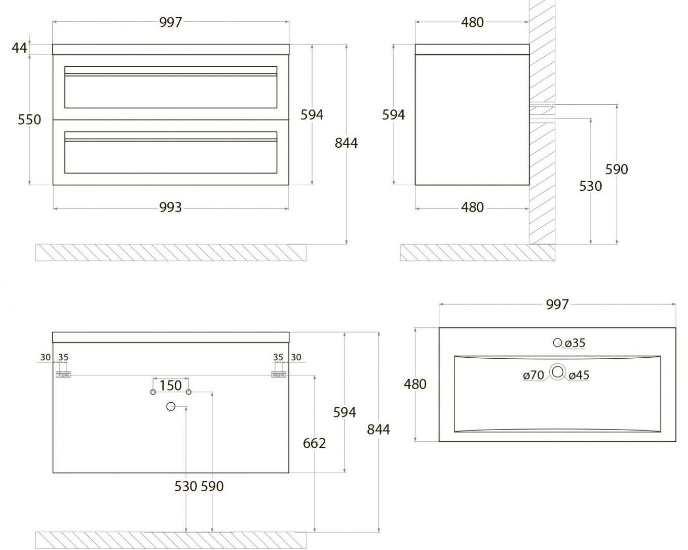 Тумба под раковину Art&Max выполнена в современном стиле и прекрасно впишется в интерьер любой ванной комнаты. Благодаря подвесной конструкции изделие не занимает много места, позволяет экономить пространство и облегчает уборку. Модель оснащена двумя выдвижными ящиками с доводчиками. Фасад изделия выполнен из МДФ.Тумба может использоваться вместе с раковиной AM-LAV-1000-MR-A.Раковина и смеситель в комплект поставки не входят и приобретаются отдельно.Особенности: