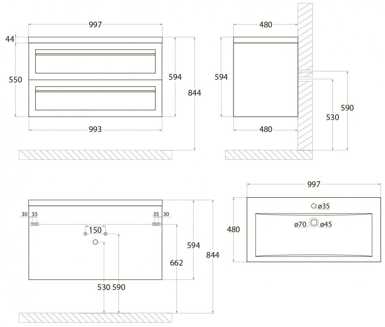 Тумба под раковину Art&Max выполнена в современном стиле и прекрасно впишется в интерьер любой ванной комнаты. Благодаря подвесной конструкции изделие не занимает много места, позволяет экономить пространство и облегчает уборку. Модель оснащена двумя выдвижными ящиками с доводчиками. Фасад изделия выполнен из МДФ.Тумба может использоваться вместе с раковиной AM-LAV-1000-MR-A.Раковина и смеситель в комплект поставки не входят и приобретаются отдельно.Особенности: