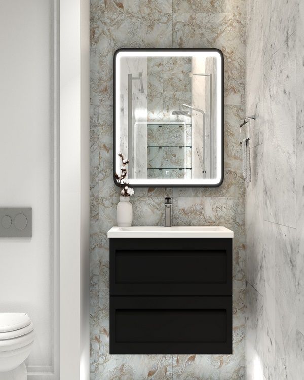 Подвесная тумба под раковину Art&Max Platino 58см чёрный матовый AM-Platino-580-2C-SO-NM