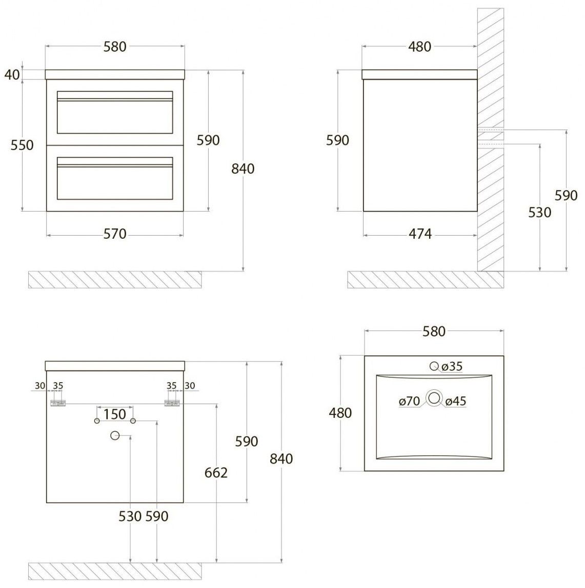 • Рекомендуемая высота от пола: 840 мм