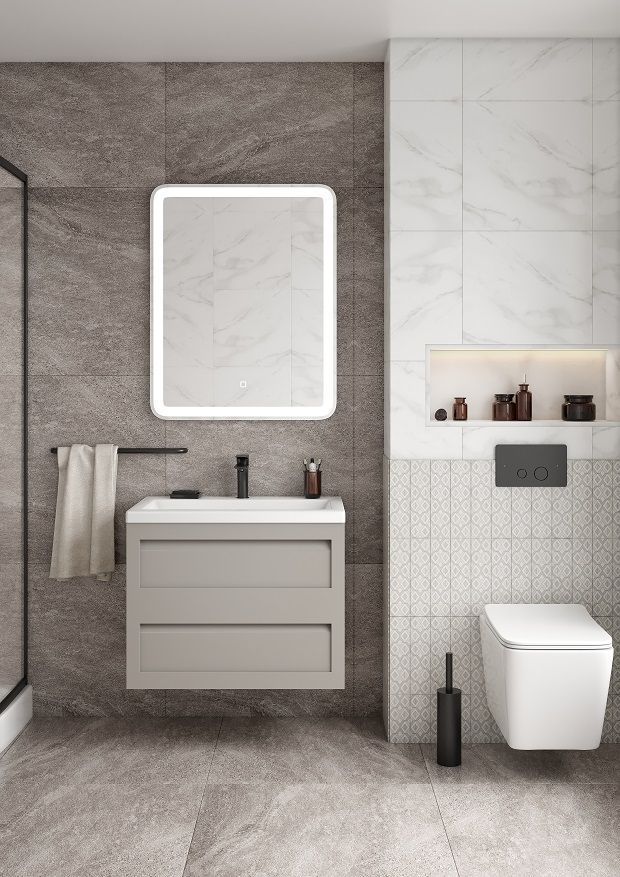 Подвесная тумба под раковину Art&Max Platino 58см светло-серый матовый AM-Platino-580-2C-SO-GCM