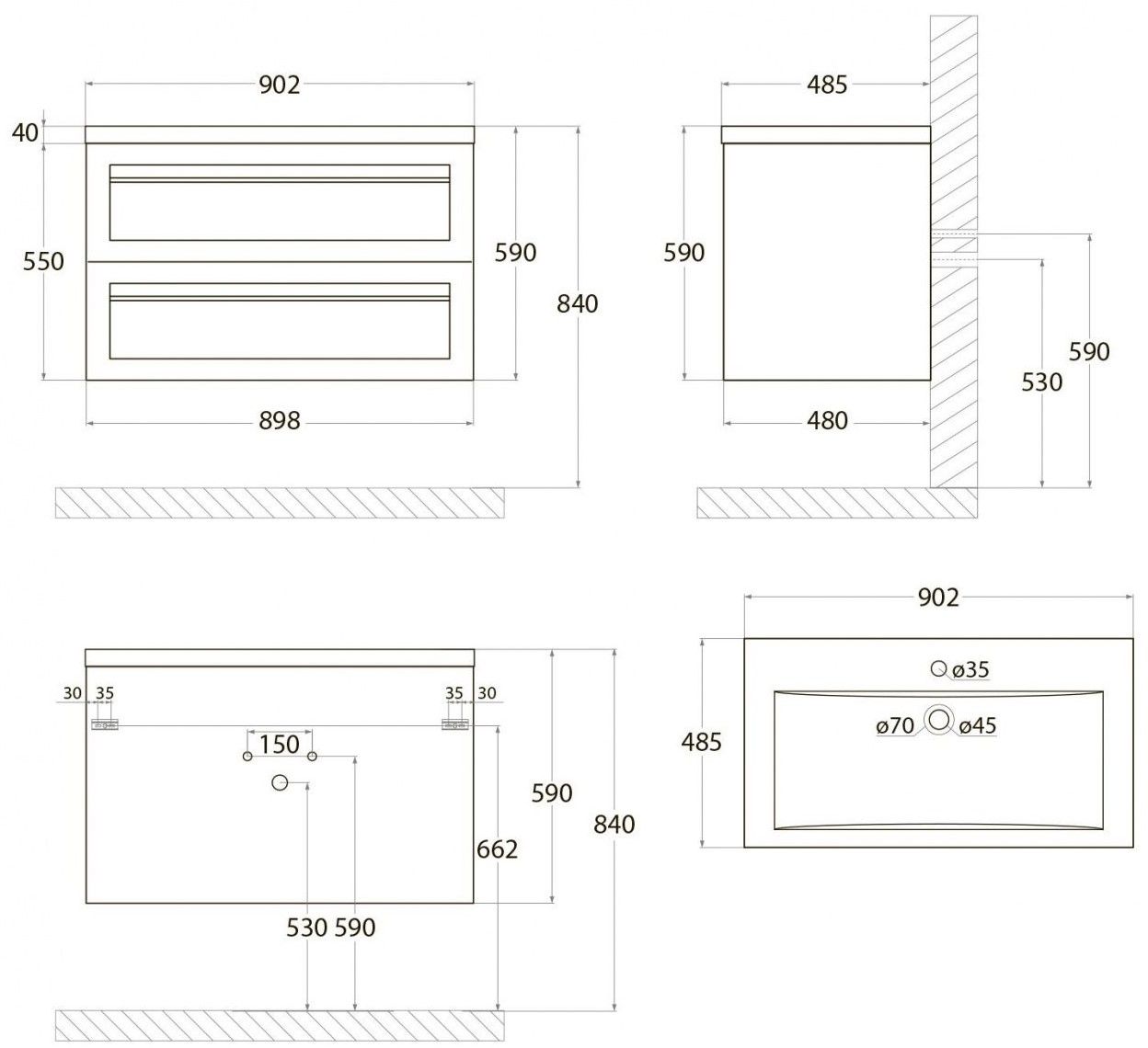 Тумба под раковину Art&Max выполнена в современном стиле и прекрасно впишется в интерьер любой ванной комнаты. Благодаря подвесной конструкции изделие не занимает много места, позволяет экономить пространство и облегчает уборку. Модель оснащена двумя выдвижными ящиками с доводчиками. Фасад изделия выполнен из МДФ.Тумба может использоваться вместе с раковиной AM-LAV-900-MR-A.Раковина и смеситель в комплект поставки не входят и приобретаются отдельно.Особенности: