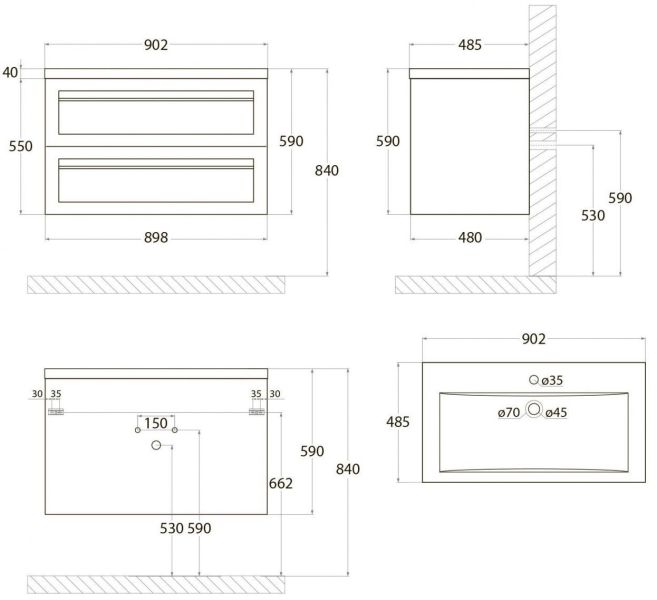 Тумба под раковину Art&Max выполнена в современном стиле и прекрасно впишется в интерьер любой ванной комнаты. Благодаря подвесной конструкции изделие не занимает много места, позволяет экономить пространство и облегчает уборку. Модель оснащена двумя выдвижными ящиками с доводчиками. Фасад изделия выполнен из МДФ.Тумба может использоваться вместе с раковиной AM-LAV-900-MR-A.Раковина и смеситель в комплект поставки не входят и приобретаются отдельно.Особенности: