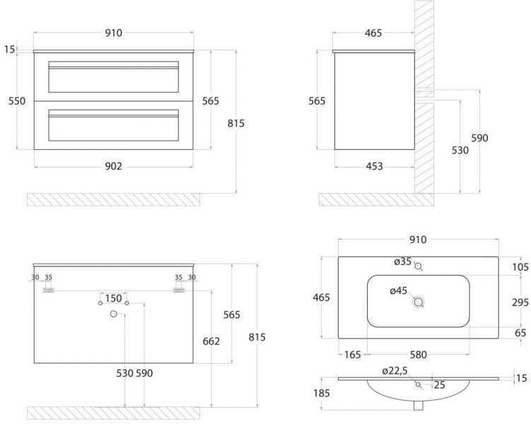 Подвесная тумба под раковину Art&Max Platino 90см серый матовый AM-Platino-900-2C-SO-GM-Cer