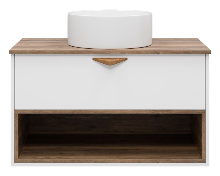 Подвесная тумба под раковину Brevita Bergen BER-07090-19-01-1Я с подсветкой 90см дуб Галифакс олово/белый