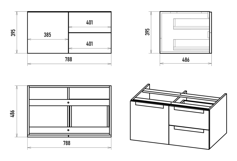 Подвесная тумба под раковину Brevita Cargo CAR-01080-021П2Я 80см чёрный