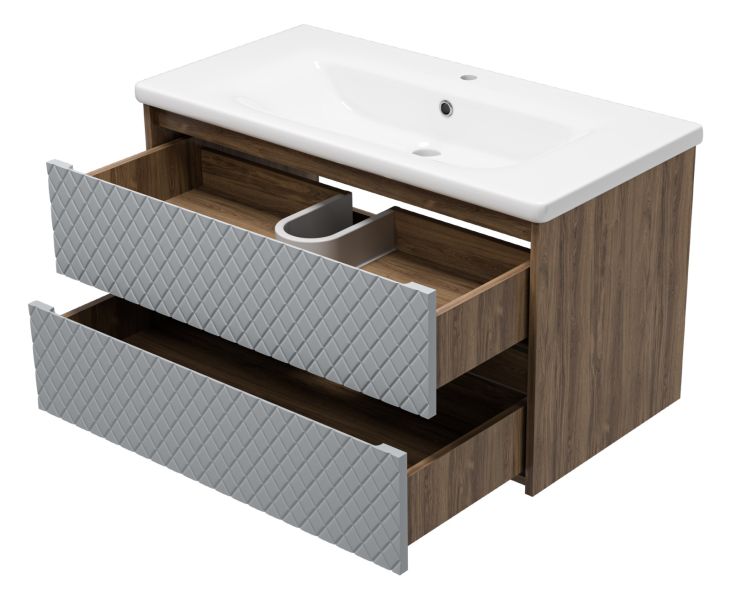 Подвесная тумба под раковину Brevita Chester CHE-09090-49502Я 90см серый/дуб Чарльстон темно-коричневый