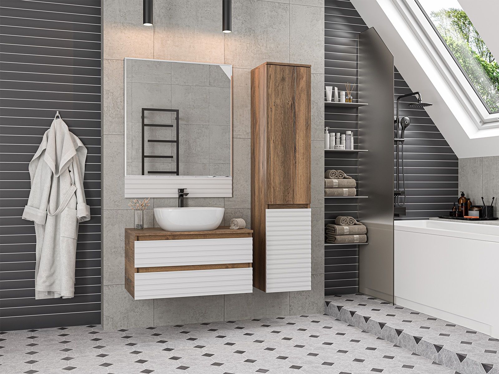 Подвесная тумба в ванную комнату – это не просто элемент мебели, а подлинный акцент в интерьере, который сочетает в себе функциональность и стиль. Она придаёт помещению лёгкость и воздушность, освобождая пространство на полу и создавая иллюзию большего объёма.Функциональные особенности таких тумб варьируются от наличия выдвижных ящиков до встроенных систем хранения, которые помогают организовать пространство ванной комнаты. Важным аспектом является также возможность выбора различных цветовых решений и отделок, что позволяет гармонично вписать тумбу в любой интерьер – от классического до ультрасовременного.С помощью подвесной тумбы ванная комната становится не только более удобной, но и эстетически привлекательной, создавая атмосферу уюта и роскоши.