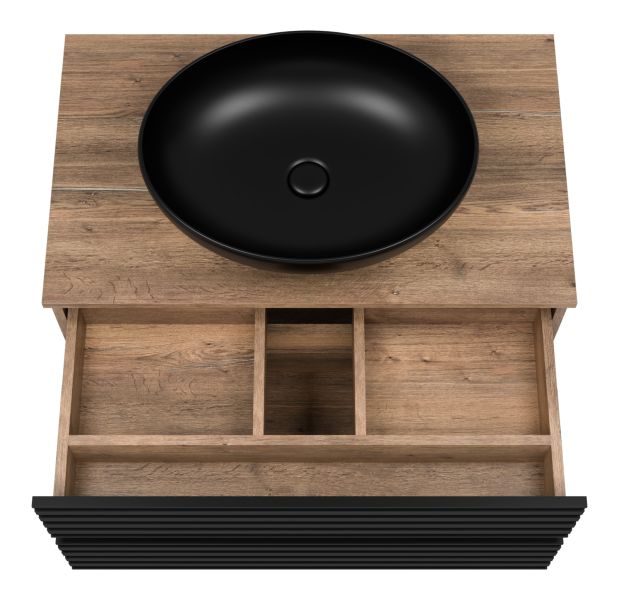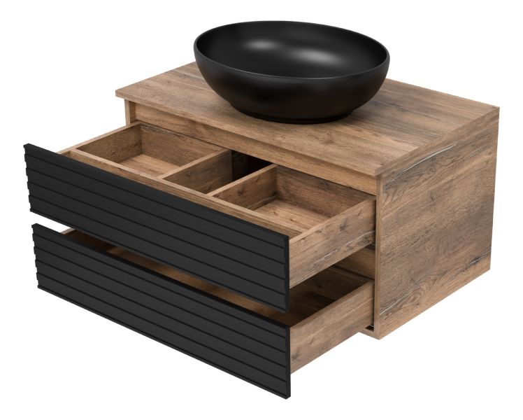 Подвесная тумба под раковину Brevita Dakota DAK-09080-19/02-2Я 80см дуб Галифакс олово/чёрный