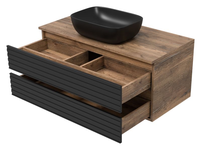 Подвесная тумба под раковину Brevita Dakota DAK-09100-19/02-2Я 100см дуб Галифакс олово/чёрный