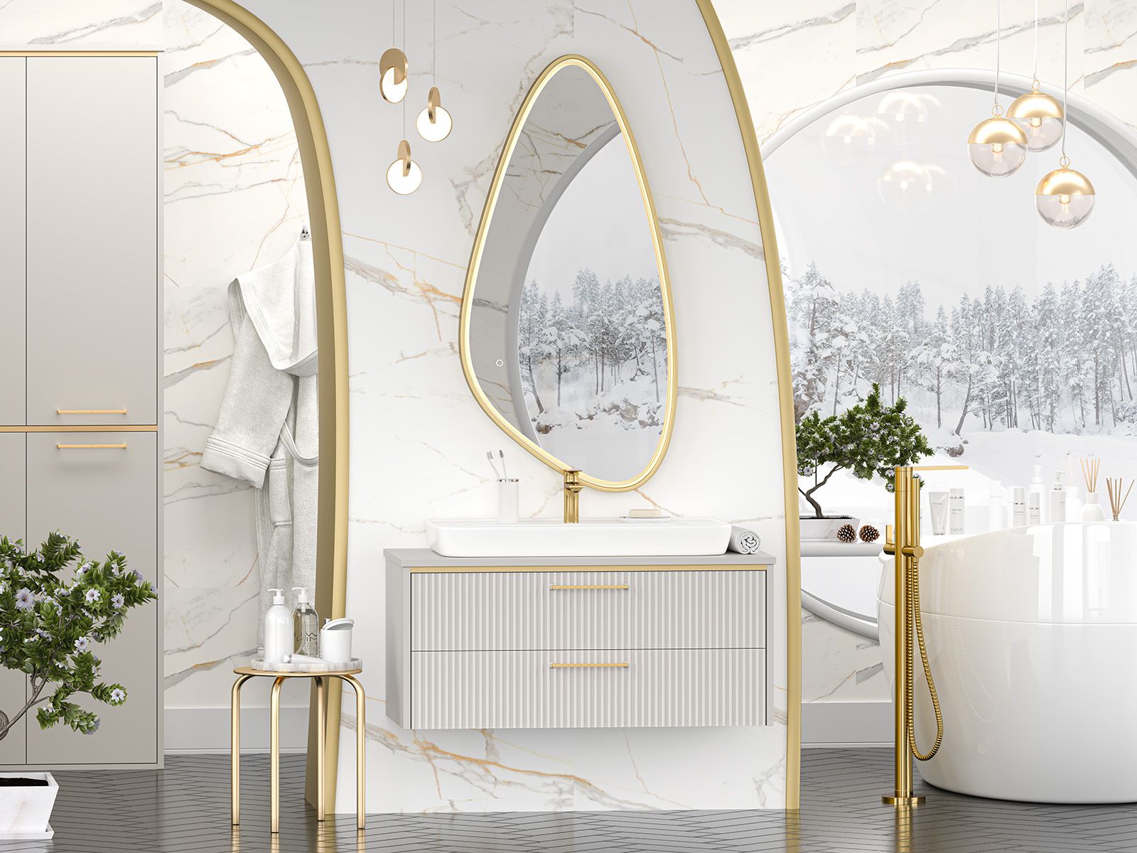 Подвесная тумба под раковину Brevita Elche ELC-01100-0502Я 100см серый кашемир/золото