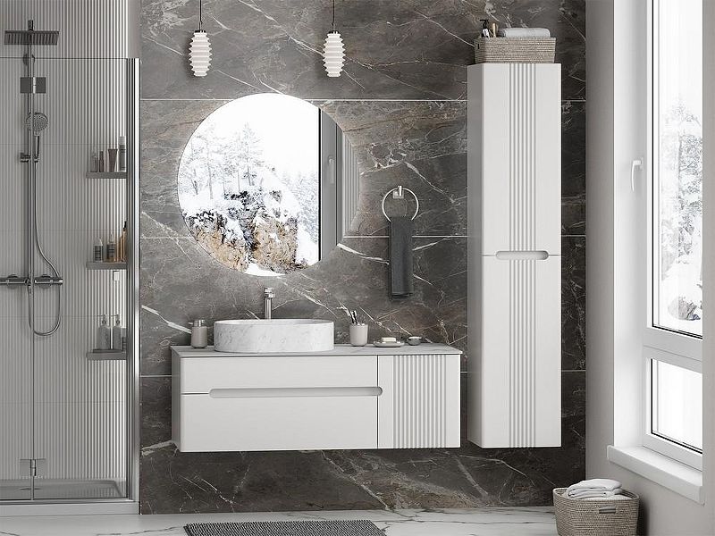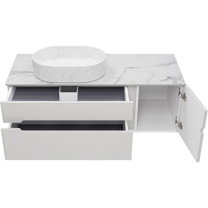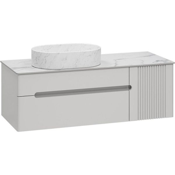 Тумба с раковиной Brevita Pallisandro 120 УТ000025404 подвесная. Pallisandro - когда эстетика встречается с функциональностью. Коллекция создана для ценителей утончённого дизайна и продуманных деталей. Здесь всё подчинено принципу элегантного минимализма: лаконичные фасады в эмали, изысканная фрезеровка на дверце и отсутствие внешней фурнитуры для чистоты линий. Главный акцент коллекции — столешницы из керамогранита, устойчивые к влаге, механическим повреждениям и химическим веществам. Накладные раковины гармонично завершают современный образ. Внутреннее пространство продумано до мелочей: ящики оснащены доводчиками скрытого монтажа, что обеспечивает плавное закрывание, а противоскользящие коврики внутри ящиков позволяют хранить вещи в идеальном порядке. Благодаря  подвесному монтажу, мебель смотрится легко, а уборка становится удобнее. Pallisandro - это премиальный комфорт, который чувствуешь в каждой детали. Характеристики: Тумба под раковину: