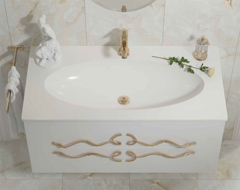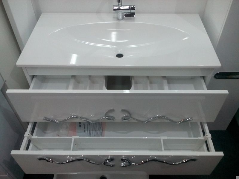 Тумба оснащена механизмами плавного и бесшумного закрытия, направляющими скрытого монтажа.
