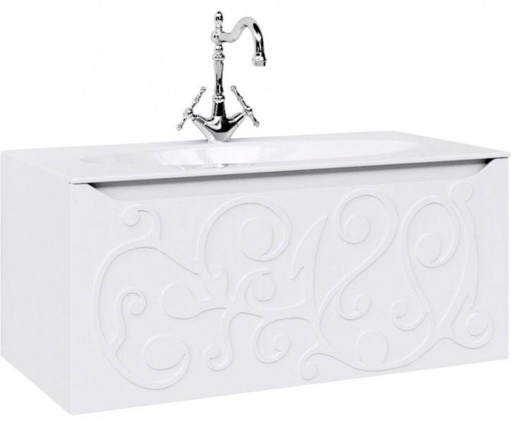 Подвесная тумба под раковину Clarberg Elegance 100 EL0110, с двойным выдвижным ящиком, с ручкой-выемкой. Эргономичность и гармония. Изысканный и нежный тисненый узор создает романтическое настроение.Технические данные:Цвет: белый матовый.
