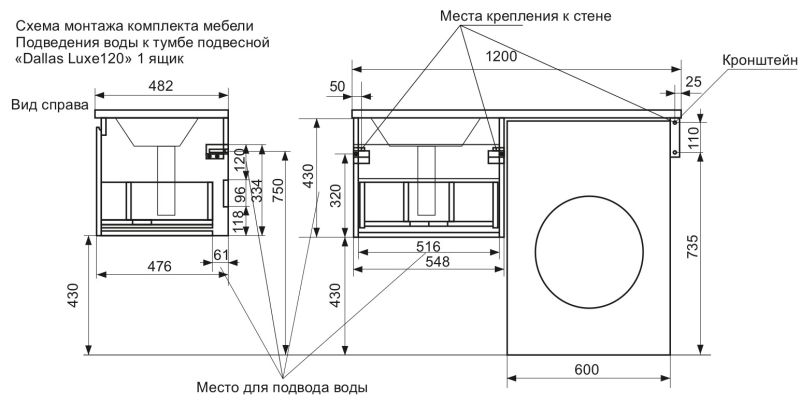 Подвесная тумба под раковину Эстет Dallas Luxe ФР-00001930 Л/П 120см длинный ящик белый купить