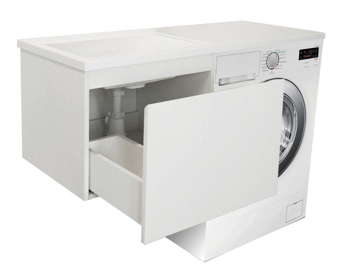 Коллекция мебели для ванной комнаты Dallas Luxe покоряет своей удивительной простой и функциональностью. Стиральная машина устанавливается под столешницей. Широкий и вместительный ящик предназначен для крупных предметов. Подвесная система монтажа позволяет более эффективно использовать пространство, не мешает уборке в ванной комнате.
