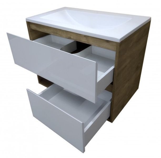 Подвесная тумба под раковину Эстет Monaco Wood ФР-00010672 90см два ящика белый/дуб рустикальный