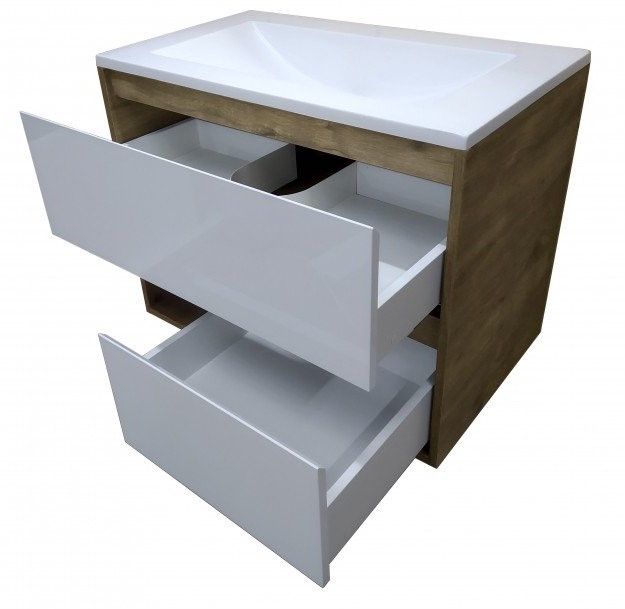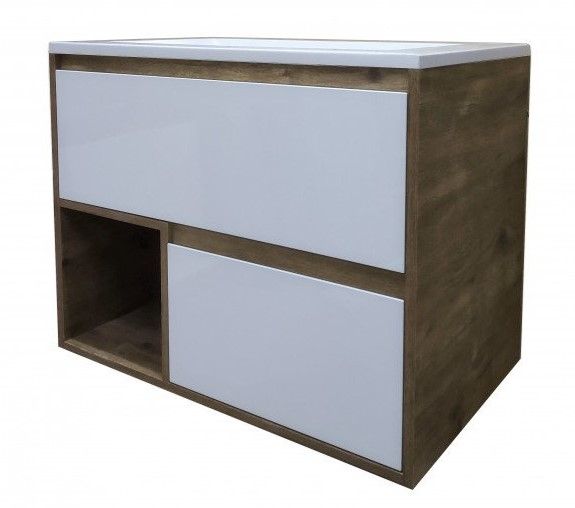 Подвесная тумба под раковину Эстет Monaco Wood ФР-00010674 80см два ящика белый/дуб рустикальный