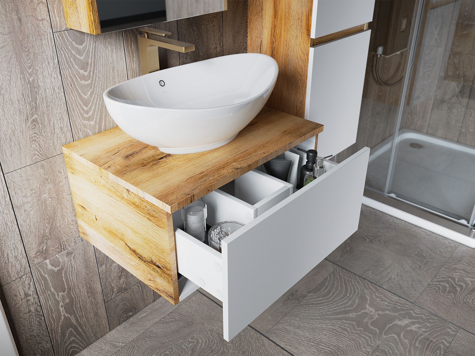 Подвесная тумба в ванную комнату – это не просто элемент мебели, а подлинный акцент в интерьере, который сочетает в себе функциональность и стиль. Она придаёт помещению лёгкость и воздушность, освобождая пространство на полу и создавая иллюзию большего объёма.Функциональные особенности таких тумб варьируются от наличия выдвижных ящиков до встроенных систем хранения, которые помогают организовать пространство ванной комнаты. Важным аспектом является также возможность выбора различных цветовых решений и отделок, что позволяет гармонично вписать тумбу в любой интерьер – от классического до ультрасовременного.С помощью подвесной тумбы ванная комната становится не только более удобной, но и эстетически привлекательной, создавая атмосферу уюта и роскоши.