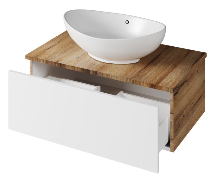 Подвесная тумба под раковину Misty Ива 80см белый/дуб Вотан