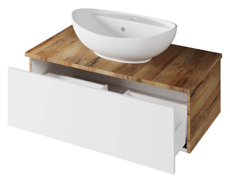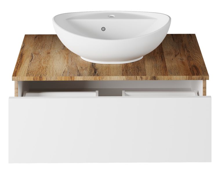 Подвесная тумба под раковину Misty Ива 90см белый/дуб Вотан