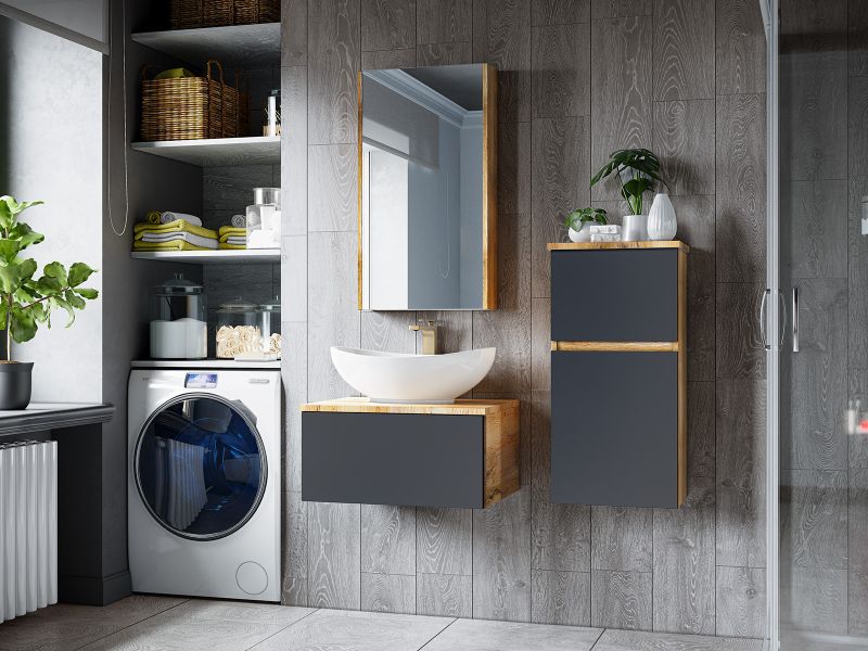 Подвесная тумба под раковину Misty Ива 90см графит/дуб Вотан