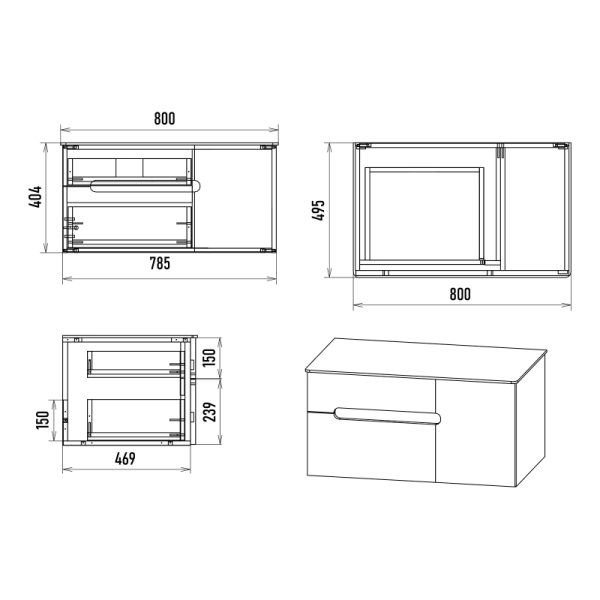 Подвесная тумба под раковину Misty Роял 80 см П-Роя-01080-021П2Я черный Подробнее
