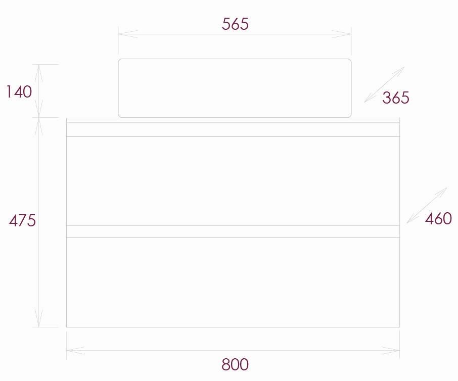 Размеры тумбы без учета раковины и ножек: 80x46x46 см.