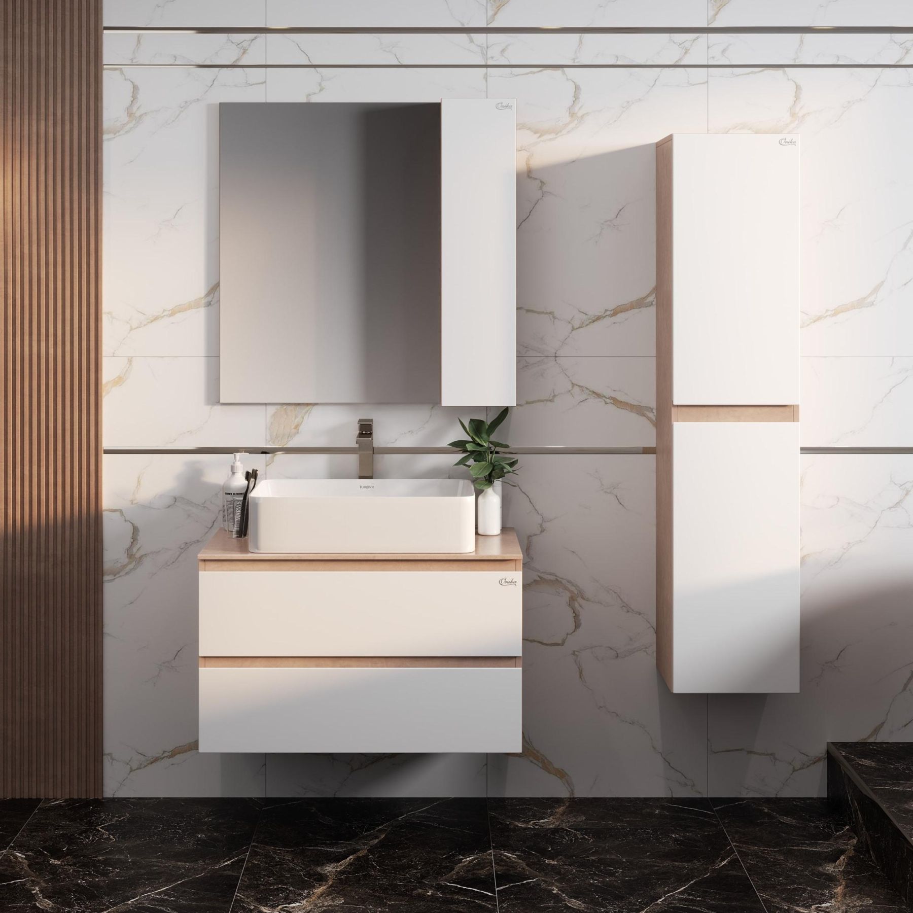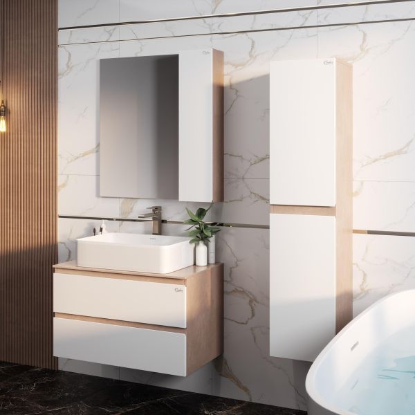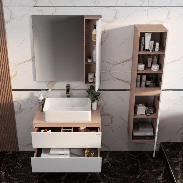 Подвесная тумба под раковину Onika Алеста 108054 80см белый/светлый камень