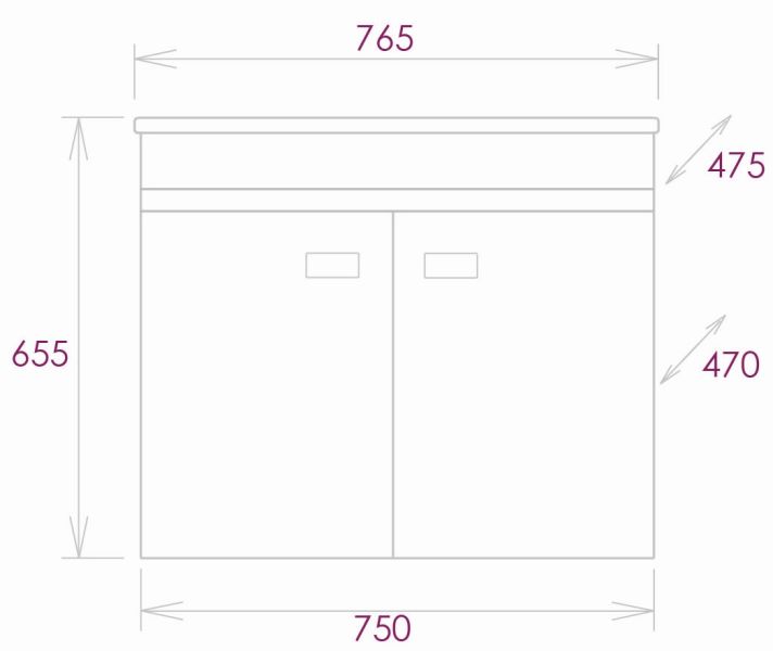 Размеры тумбы без учета раковины 75х47х63 см.