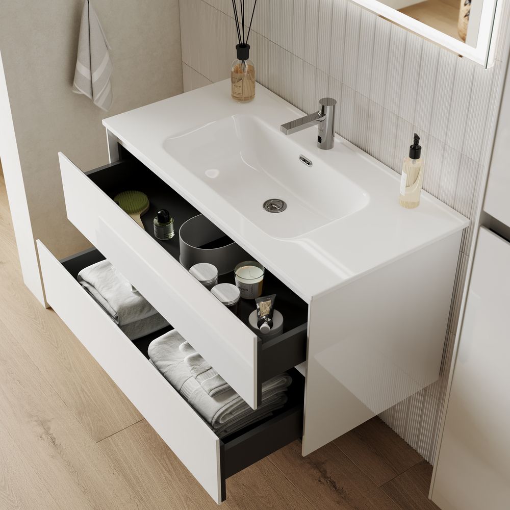 Подвесная тумба под раковину Sancos Cento CN90W 90см белый глянец