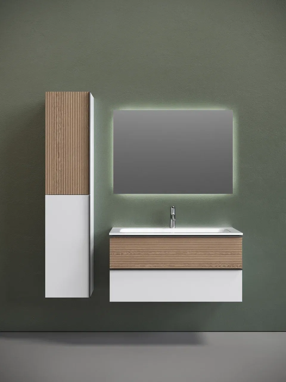 Подвесная тумба под раковину Sancos Delta DL100W 100см дуб светлый/белый